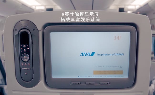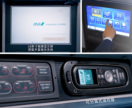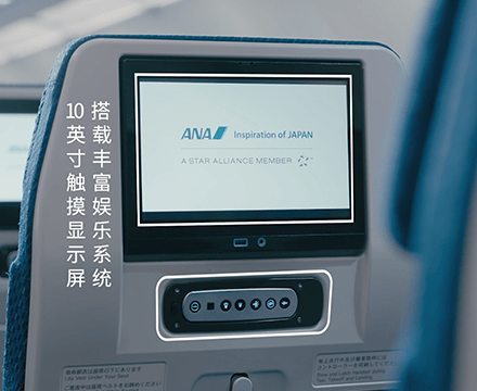 18英寸大型触摸显示屏搭载最新热门电影、ANA原创节目以及各种音乐歌曲,可分离式摇控器,带给您更多的旅程娱乐。