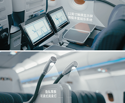 豪华平躺座椅,让您在空中之旅随心放松、享受舒适。